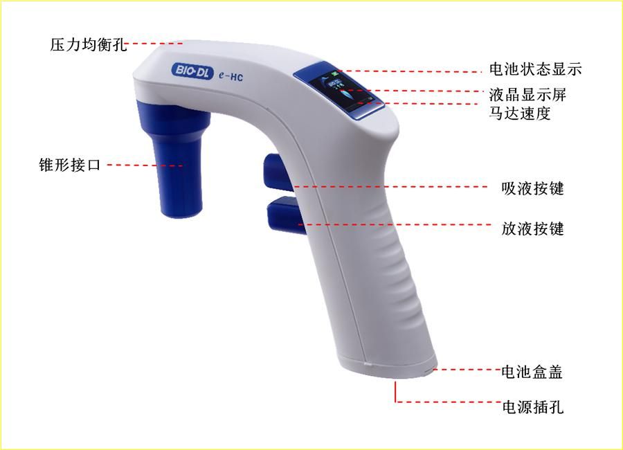 BIO-DL e-HC电动大容量移液器,具备卓越的人体工程学设计,灵敏的速度控制功能可确保对多种液体进行轻松顺畅移液与分液,超大液晶显示屏使电池余量、吸液、排液的速度一目了然,让您从容不迫地进行移液工作,更好的适用于细胞接种或传代时移取或添加培养基,保证灵活舒适的液体操作,加快实验流程。