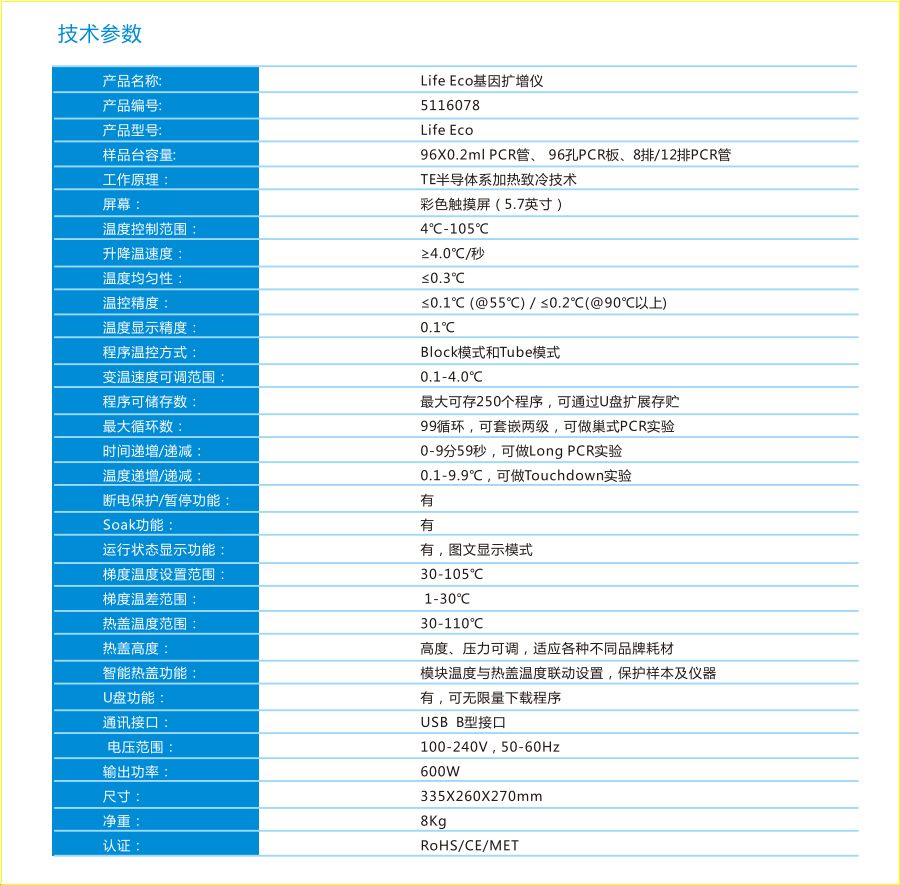 LifeECO基因扩增仪是一款多功能、多用途PCR 仪,其仪结合了多项先进技术,满足不同类型的PCR 实验要求,在同类产品中处于领先地位。