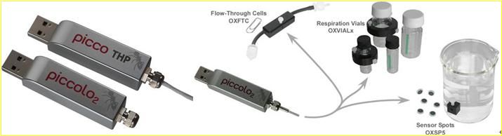 2)PiccolO2 U盘式测量仪:大小仅15x15x54mm,重量约20g,单通道,激发光620nm,检测器760nm,采样频率每秒20次。可并联组成多通道测量系统。可通过PiccoTHP测量温湿度和气压并进行补偿