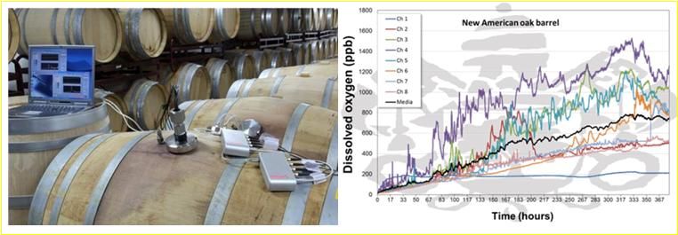 案例7:西班牙Valladolid大学利用RFO2荧光光纤氧气测量技术,监测葡萄酒橡木桶O2吸收——对葡萄酒品质至关重要但一直以来缺乏科学的了解。葡萄酒在橡木桶内(3-24个月)的过程溶解氧至关重要,因为O2调节了葡萄酒整个的熟化过程。